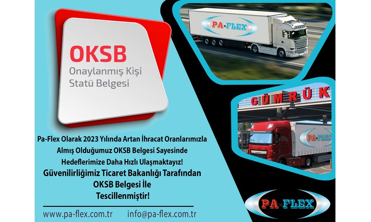 2023 yılına hızlı başlangıç yapan PA-FLEX, yüksek ihracat oranıyla Onaylanmış Kişi Statü Belgesine sahip olarak başarılarına bir yenisini daha ekledi. OKSB, gümrük mevzuatına göre yapılan işlemlerde kolaylık ve basitleştirilmiş işlem sağlayan bir belgedir. Gümrük işlemleri